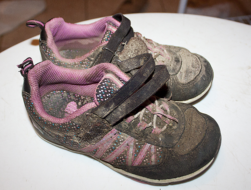 As you can see, the pants look brand new. I was super impressed. So I decided to try the Punks muddy shoes, which had only ever been cleaned once before and were in serious need of some cleaning. Behold:
